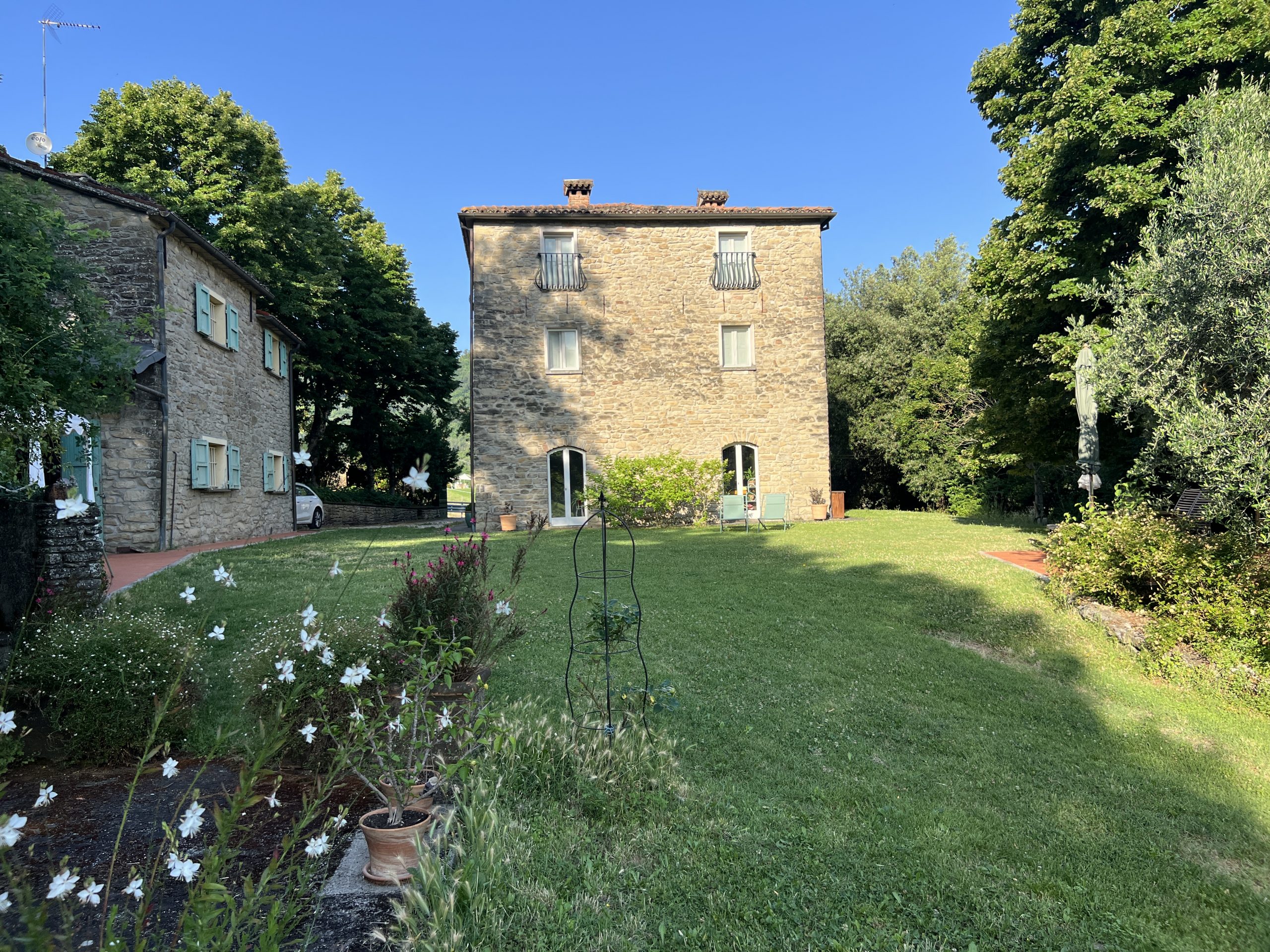 Das Haus (Baujahr 1890) ist liebevoll gestaltet, mit restaurierten Möbeln und einem parkähnlichen Garten. Dazu gehört ein großer Pool, geschützt durch eine 14 Meter lange Granatapfel-Hecke – ein wunderbar privater Platz zum Ankommen und Durchatmen.
